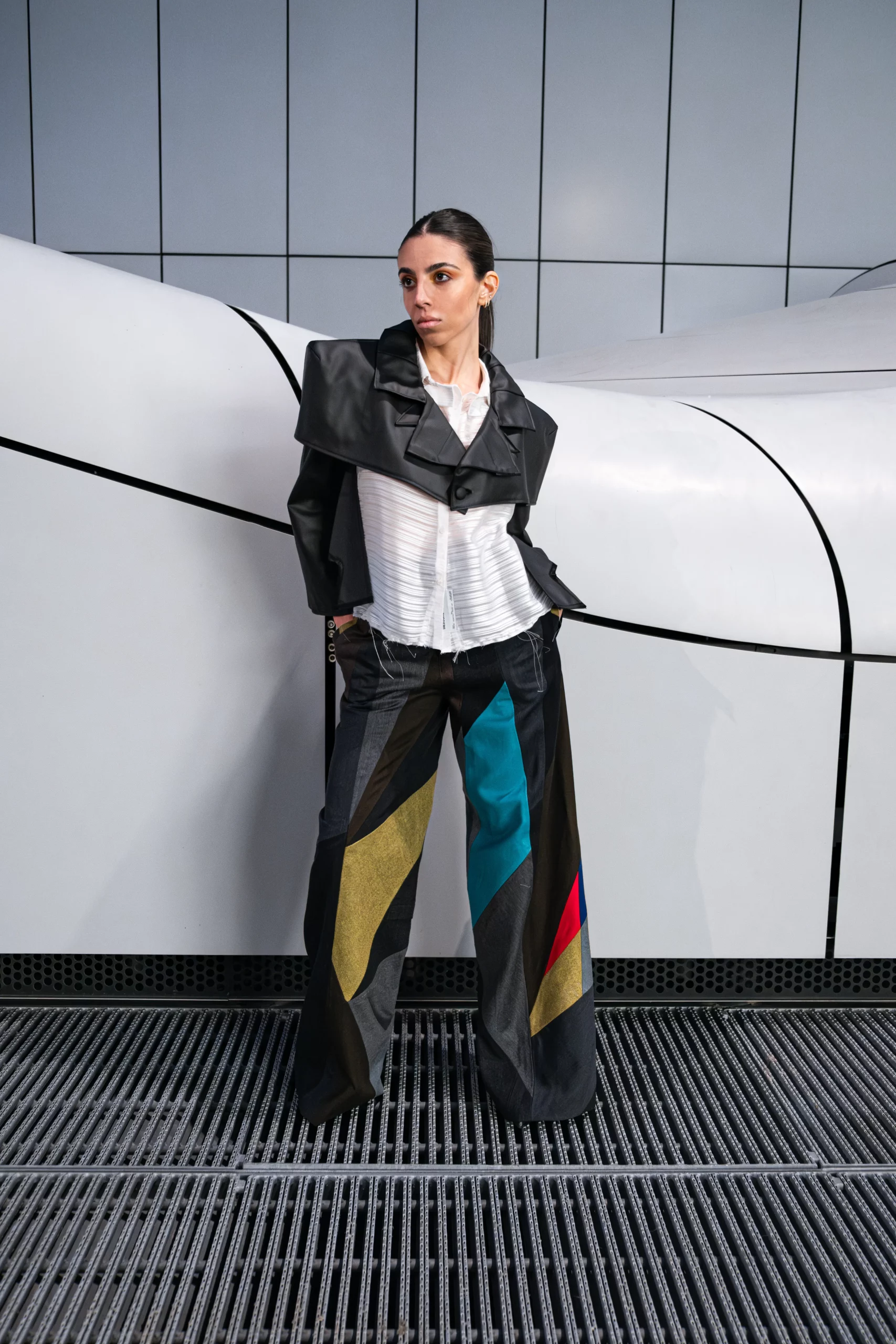 Michael crea silhouette geometriche e d’impatto per quelle donne che vogliono sentirsi forti senza rinunciare alla propria femminilità, rendendo chiunque indossi il brand un’opera d’arte. Nonostante non sia ancora presente una collezione unica Michael tiene a rendere nota la sua tecnica zero-waste grazie alla quale ogni scampolo di tessuto viene utilizzato al 100°, ogni cartamodello si incastra perfettamente per non lasciare residui, ecco la versione dell’up-cycling di Michael Ruggiero.